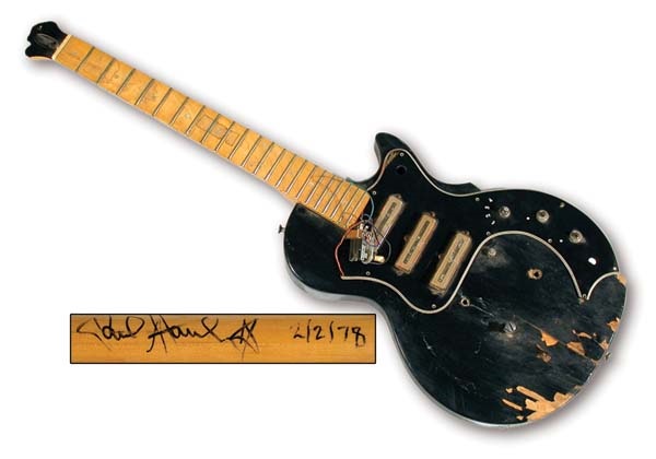 This Gibson Marauder was smashed on stage by Paul Stanley. It is obviously unplayable. But what most of us would see as a disaster, Kiss guys see as a way to make money. The guitar was signed on the back of the neck, and was sold as memorabilia for $2,109.98. Who says America isn’t the land of opportunity?