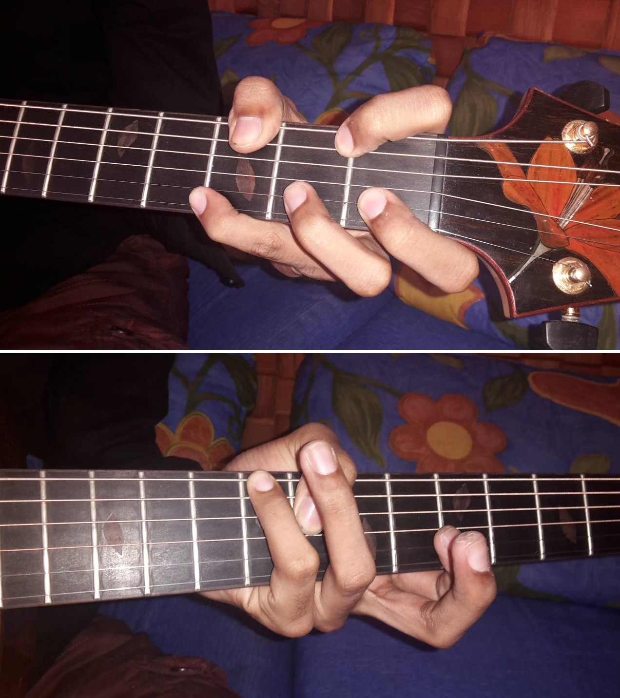 Despite the fact that the first chord is really weird, no doubt it’s a WIN to have such long and flexible fingers ! To play guitar, obviously !