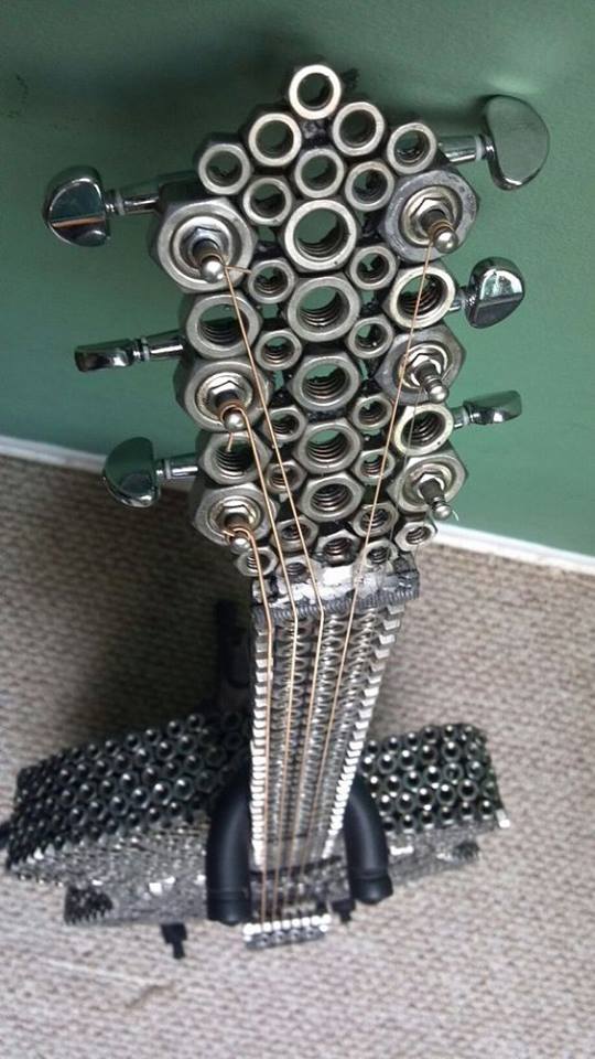 WOW ! That guitar seems so heavy, it must be like trying to play a bass while weightlifting at the same time.