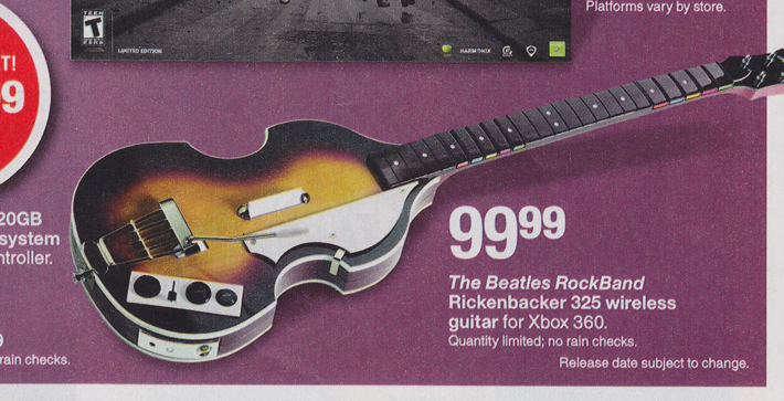 Someone didn’t do their homework, unless… Unless this Rock Band controller is cosplaying a Rickenbacker cosplaying a Hofner violin guitar. Now, it makes total non-sense !