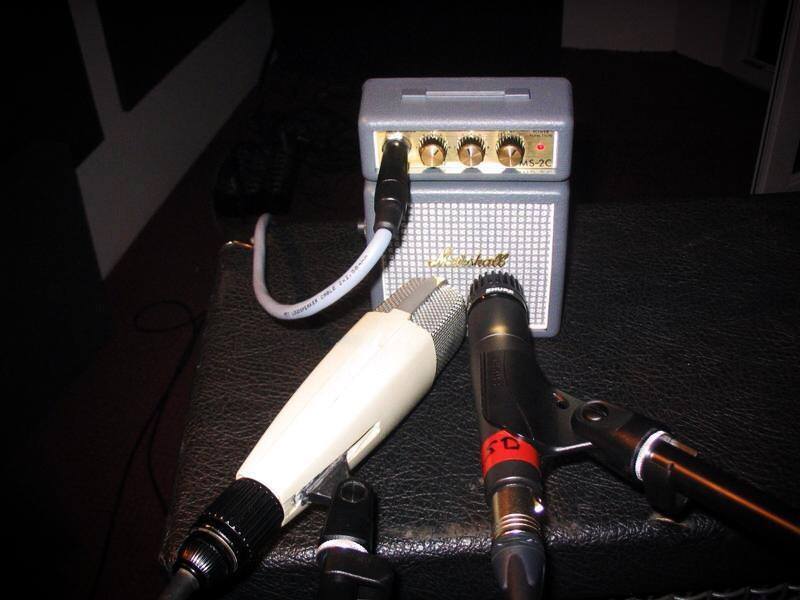 Funny picture. There have been many records recorded using small amplifiers. But that small ? Not so sure ! Still, I wonder how this mini toy-ish amp would sound on a record ?