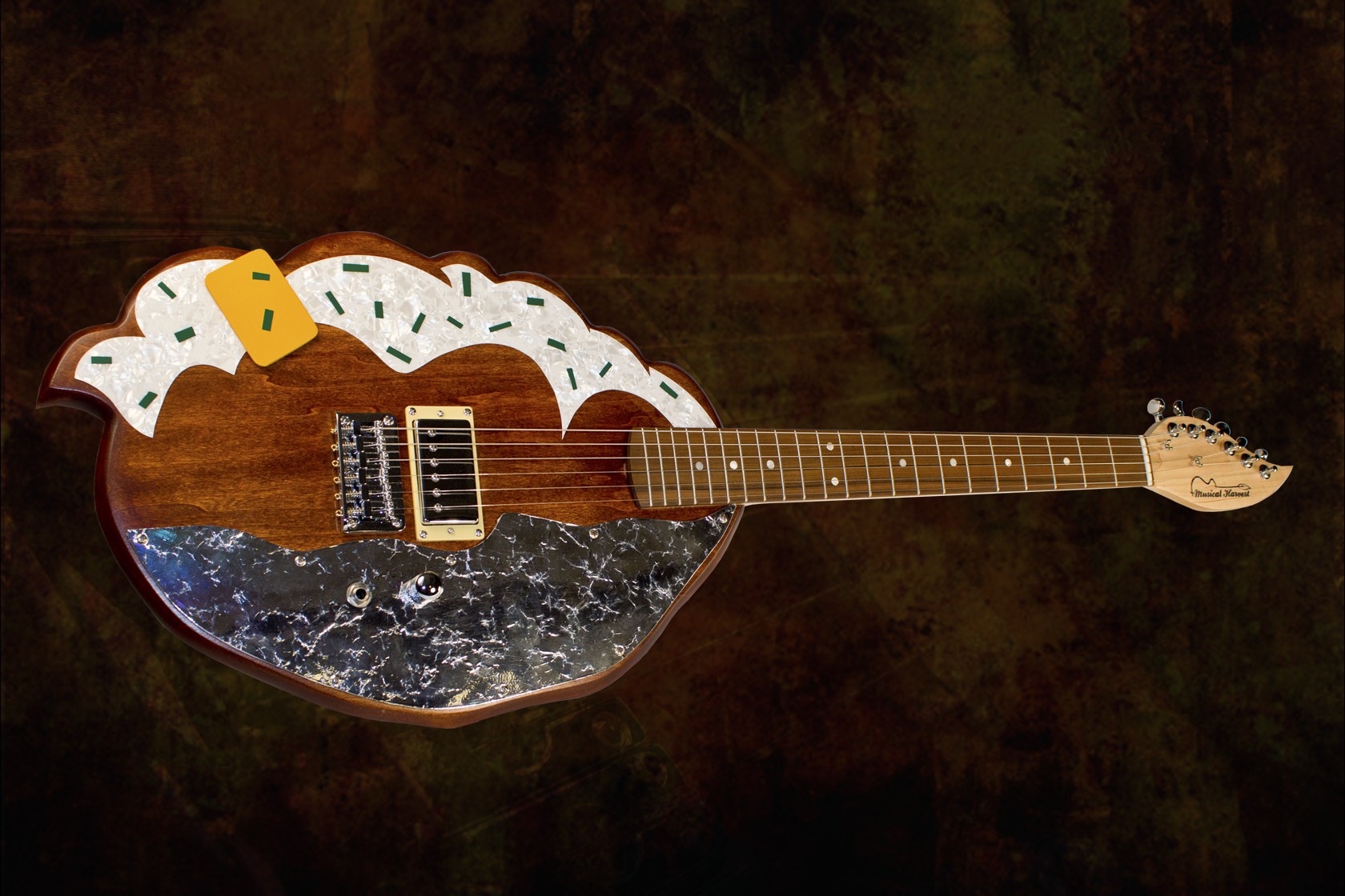 Musical Harvest Guitars was founded in 1993 by Doug Ranno to combine his passion for music, guitars, and the fresh produce industry. You can’t make this up ! The company creates unique guitar designs, with many being played and signed by celebrities, bands or musicians as a way to raise money for charity.