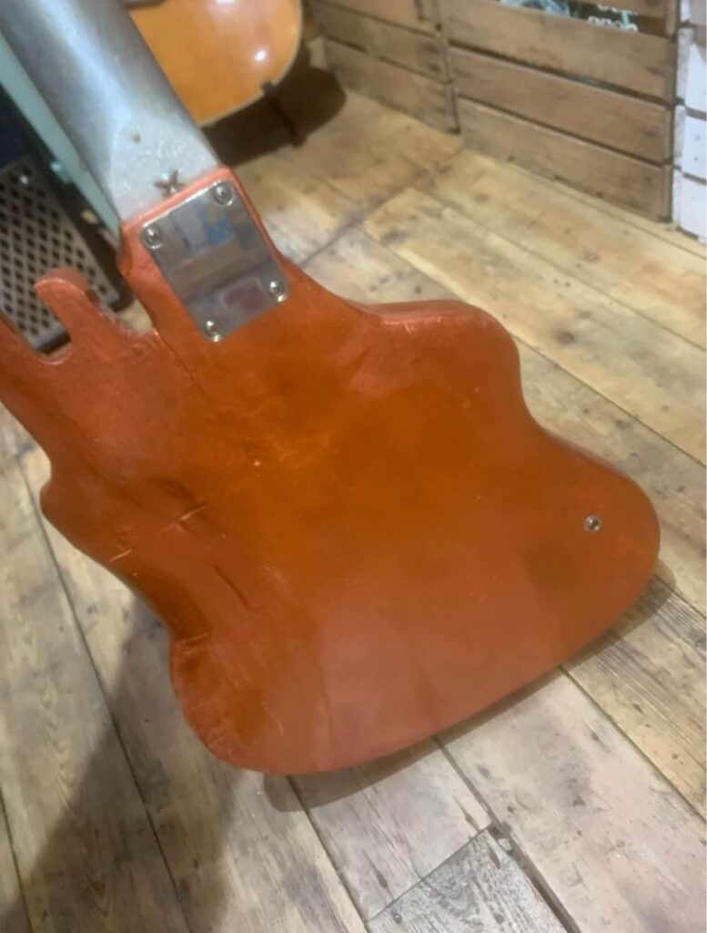 * The tag actually says : “One off custom hand made fretless bass guitar. Wilkinson ??? pickups. £99”*