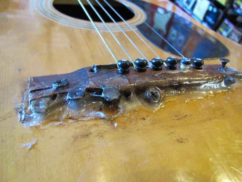 Keep in mind this was the first bridge replacement that came into my shop. Epoxy and wood screw repair went very well. That’s been years ago and it’s still holding up with no problems.
