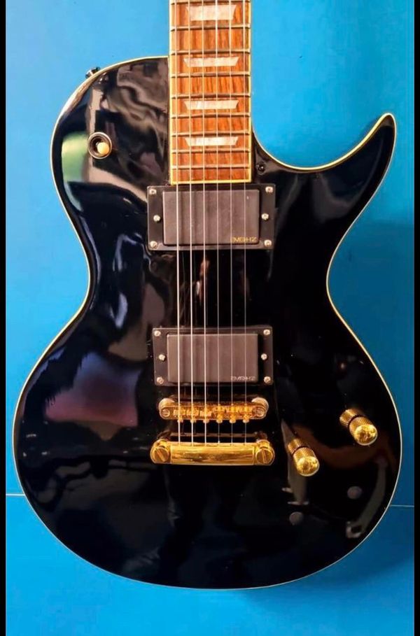On a more serious note, if we can manage it, let’s chat about that sleek, glossy black finish, which contrasts beautifully with the eye-catching golden hardware. Like a tuxedo paired with gold cufflinks, this guitar means business, but in the cheekiest way possible.