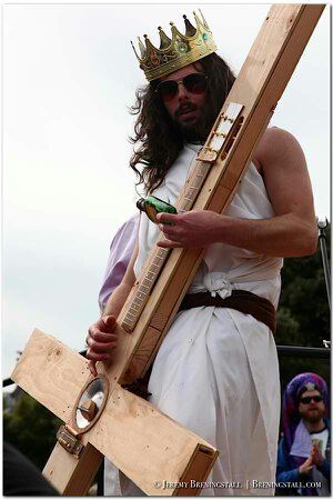 I’m speechless ! This unique squareneck resonator guitar was handmade by Funky Jesus, the winner of the 2012 Hunky Jesus competition in Dolores Park in San Francisco. Wouldn’t that be the perfect instrument for a death metal act ?