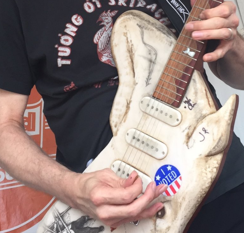 The Whale Guitar’s journey is as epic as Captain Ahab’s chase. Played and signed by hundreds of guitarists— it’s a whale remember? It has plenty of space to be signed by hundreds including J. Mascis and Nels Cline— it’s on a mission to amplify voices for climate justice and ocean health.