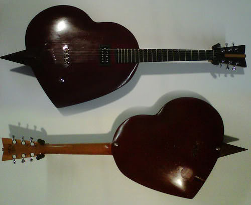 It’s Valentine’s day, so here is a guitar that combines the romance of a heart-shaped guitar with the deadly accuracy of an arrow. The perfect guitar for Cupid’s next gig.