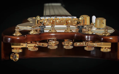 This rather ugly headstock belongs to a Gibson 7 string steel semi-acoustic guitar. Only three of these guitars were hand-built in the 90s by luthier Roger Giffin when he worked for the Gibson Custom Shop. This guitar has such heavy-gauged strings on the bass side...