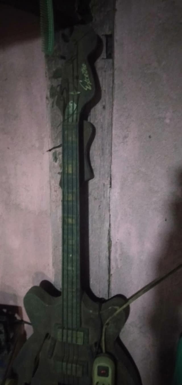 You can’t get any relic than that. Pretty sure that under the mold and dirt, there is a nice bass guitar to rescue… Well, if someone can lift it from that wall !