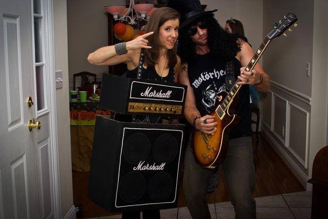 Not many girlfriends would dress as a guitar amp. That’s great dedication to rock and roll.
