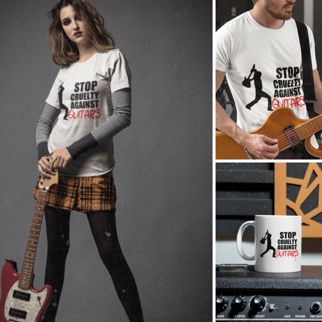So, what are you waiting for? Get your hands on the Stop Cruelty Against Guitars t-shirt or mug today and help us put an end to the madness.