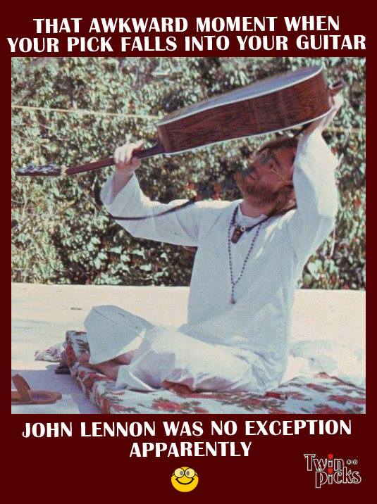 Looks like the pick decided it wanted to be a part of the band after all, but it’s going to have to work its way up from the bottom. Or maybe it is just taking a little break, it’s probably tired of being constantly strummed and plucked.