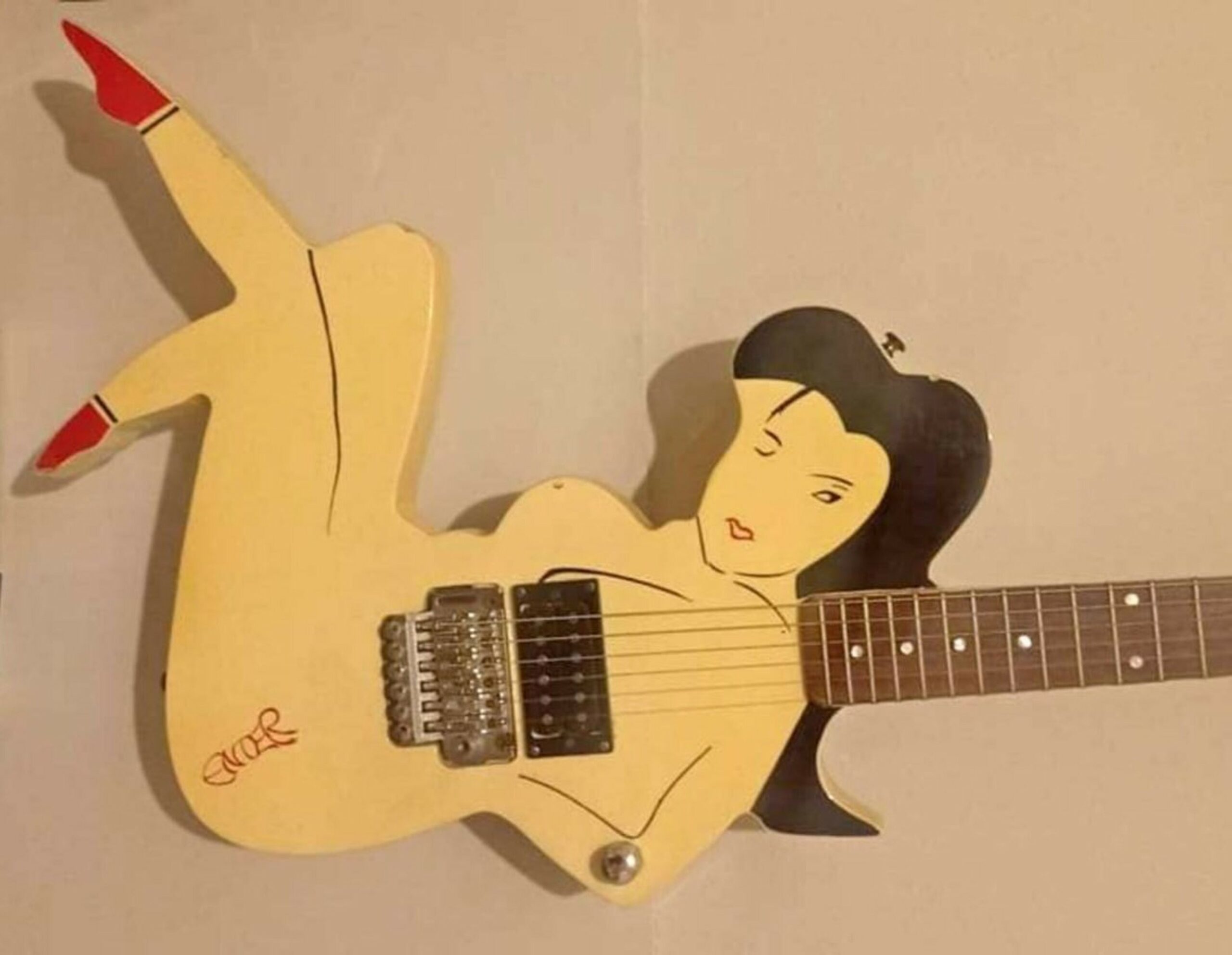 In any case, behold, this six-string seductress – a guitar that’s got more curves than a winding back road and more style than a 50s soda shop.