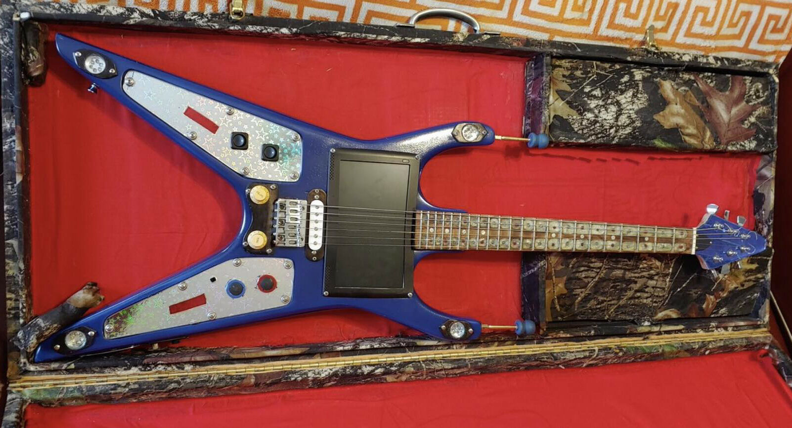 Straight from the depths of Facebook Marketplace comes a gem that’s out of this world—literally. Introducing the Custom Zwildatron guitar, a quirky mix of a Flying V and something straight out of a 60s sci-fi show.