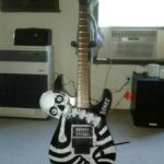 This guitar has such heavy-gauged strings on the bass side that they had to come up with this “compound” headstock to manage the pressure. The headstock was designed by Roger Giffin and Alex Gregory.
